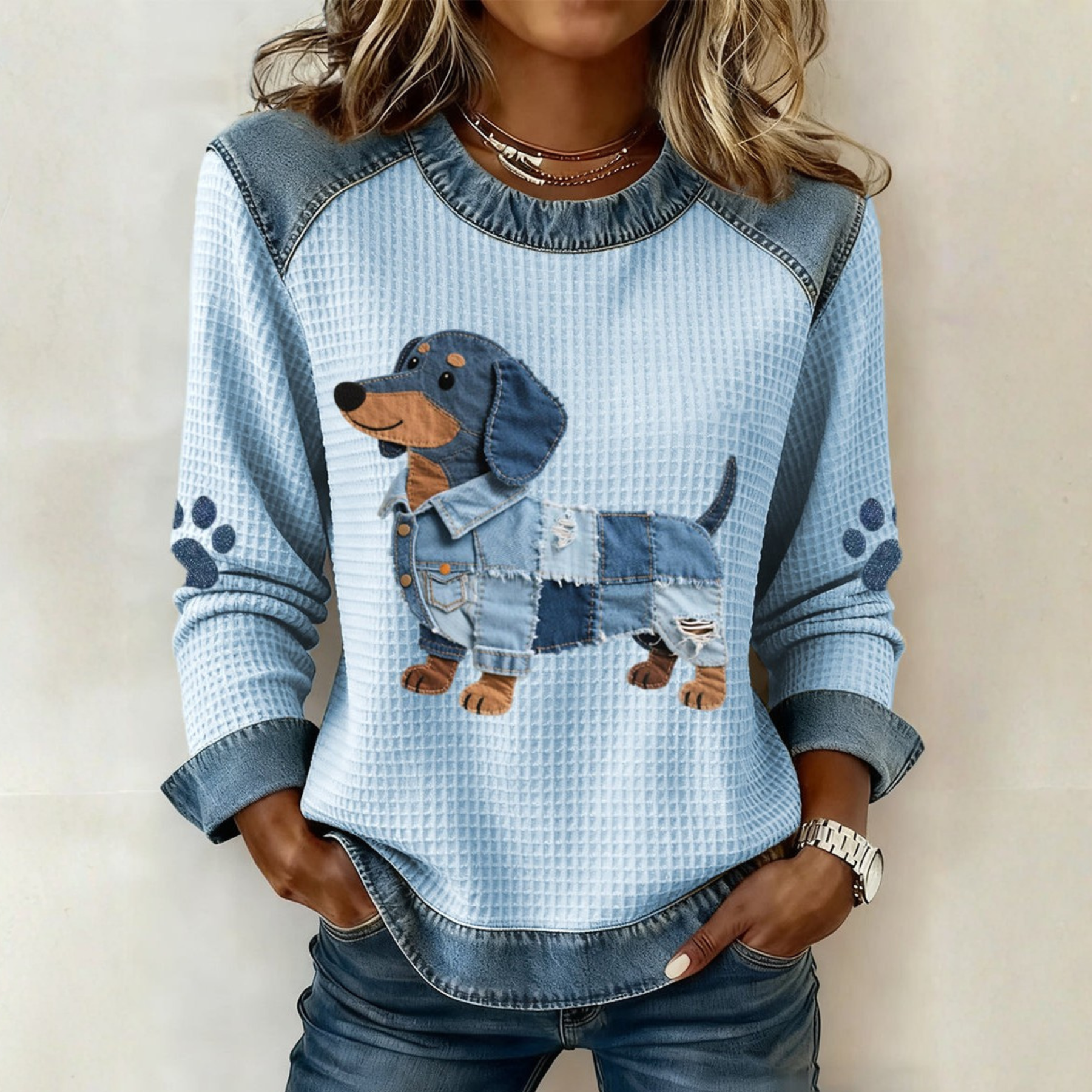 Nuria - Perro salchicha encantador con patchwork denim
